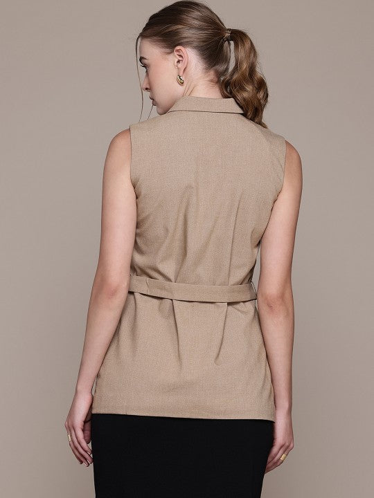 Textured Waistcoat with Belt is a refined and versatile piece that seamlessly blends classic tailoring with modern design. Crafted for those who appreciate understated elegance, this waistcoat is perfect for both formal events and chic casual outings.